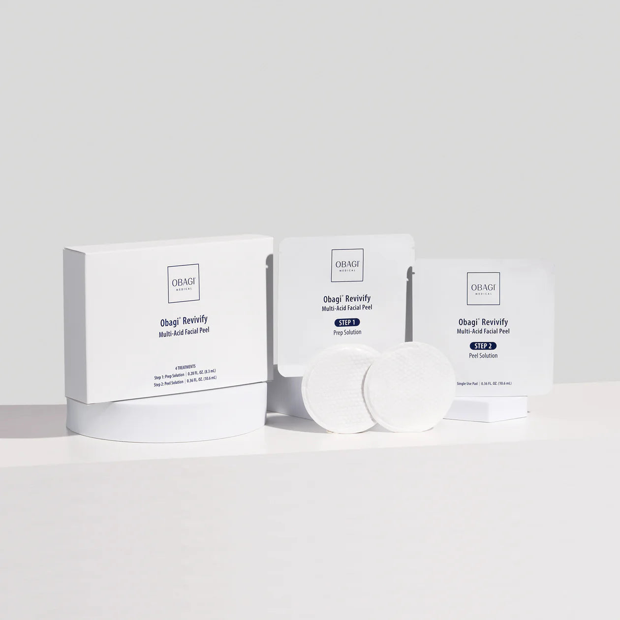 Obagi’s Revivify Multi-Acid Facial Peel is a routine revival by jumpstarting the skin cycle and unveiling a smoother, brighter appearance.